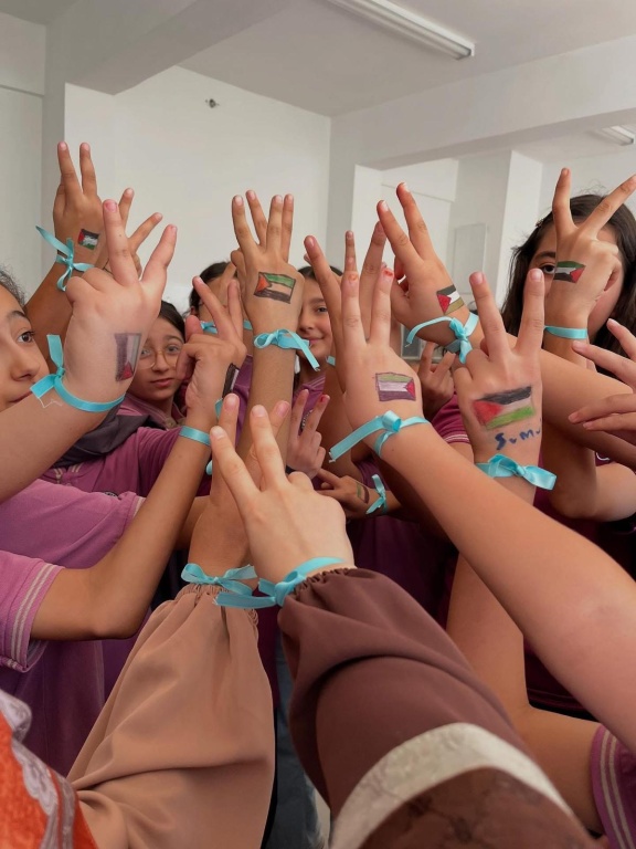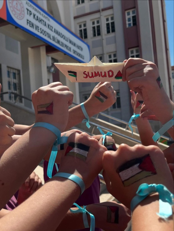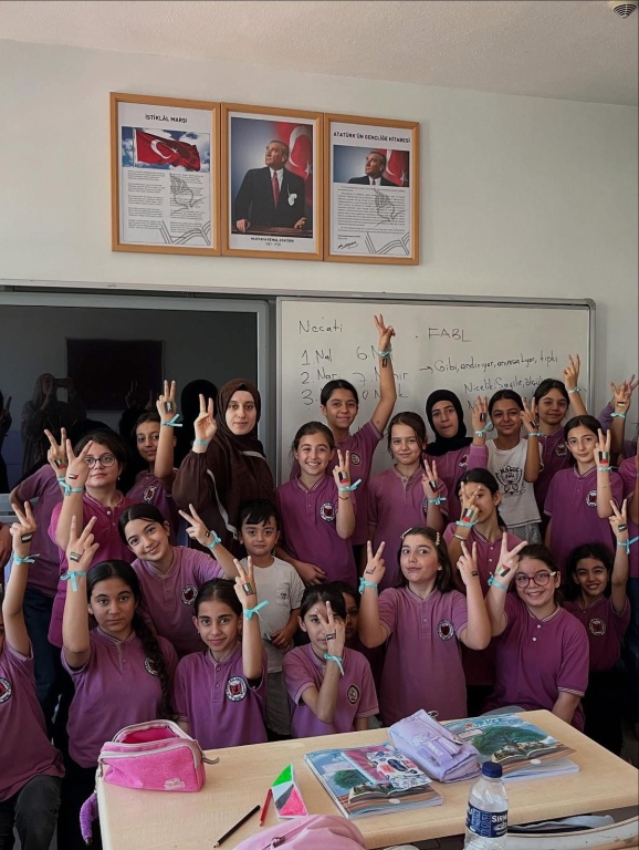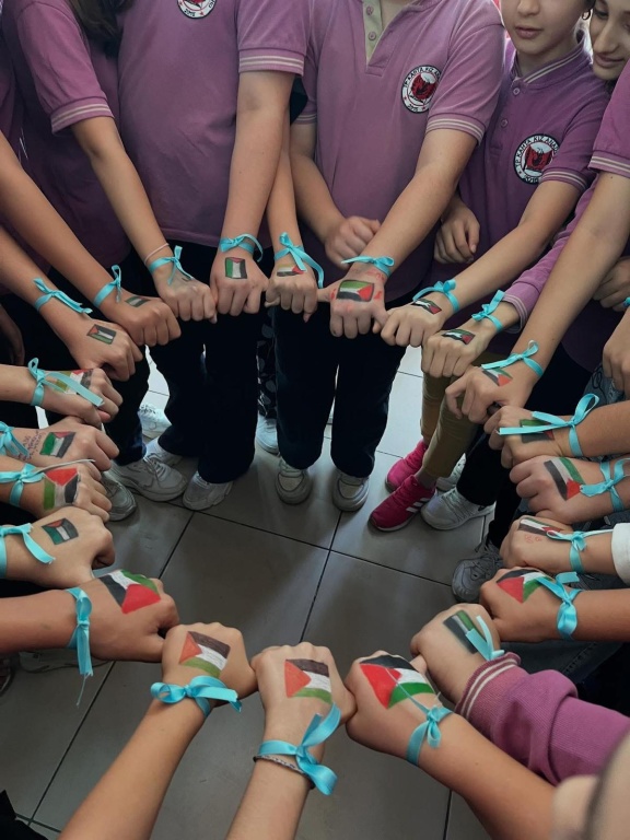 Okulumuzun minik öğrencileri, Filistin’e destek olmak için kendi yöntemlerini kullandı. Bileklerine mavi kurdeleler takıp ellerine Filistin bayrağı çizdiler. Ayrıca Filistin’e ulaşmasını diledikleri yardımları temsilen küçük gemiler yaptılar. Onların masumiyetle dolu bu çabaları, Filistin’deki kardeşlerine en samimi duaları ve umutları iletiyor. Bu duyarlı davranışlarından dolayı tüm öğrencilerimizle gurur duyuyoruz.