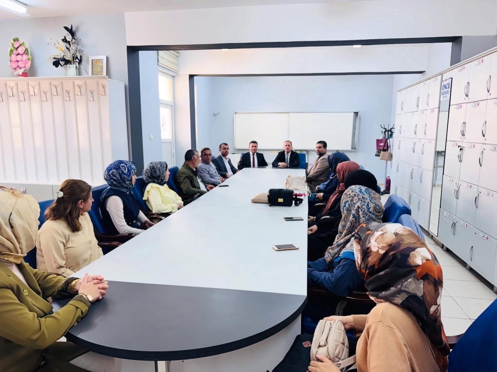 Ziyaretin son durağında öğretmenler odasında bir toplantı düzenlendi. Soru-cevap şeklinde geçen bu buluşmada, Sayın Ali Tosun, Bakanlığın yeni eğitim vizyonunun merkezinde yer alan “Türkiye Yüzyılı Marif Modeli” hakkında detaylı bilgilendirmelerde bulundu. Modelin uygulanmasında öğretmenlerin kritik rolünü vurgulayan Sayın Ali Tosun, Sayın Lütfü Başli ve tüm okul personeline çalışmalarından dolayı teşekkür ederek başarılar diledi.