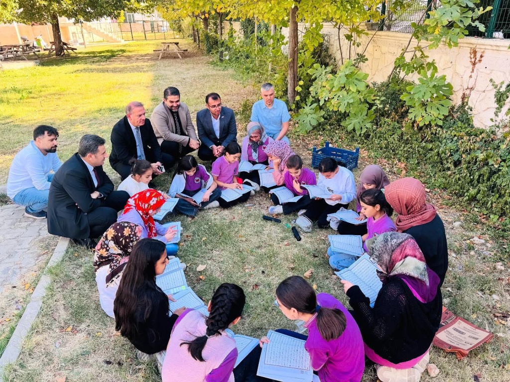 Okul bahçesinde Kur’an-ı Kerim dersi işleyen öğrencileri gören Sayın Ali Tosun, dersin bir bölümüne katılarak öğrencilerin tilavetlerini dinledi. Ardından sınıfları gezerek öğrencilerle sıcak bir ortamda hasbıhal etti, eğitim hedefleri ve derslerle ilgili sohbetler gerçekleştirdi.